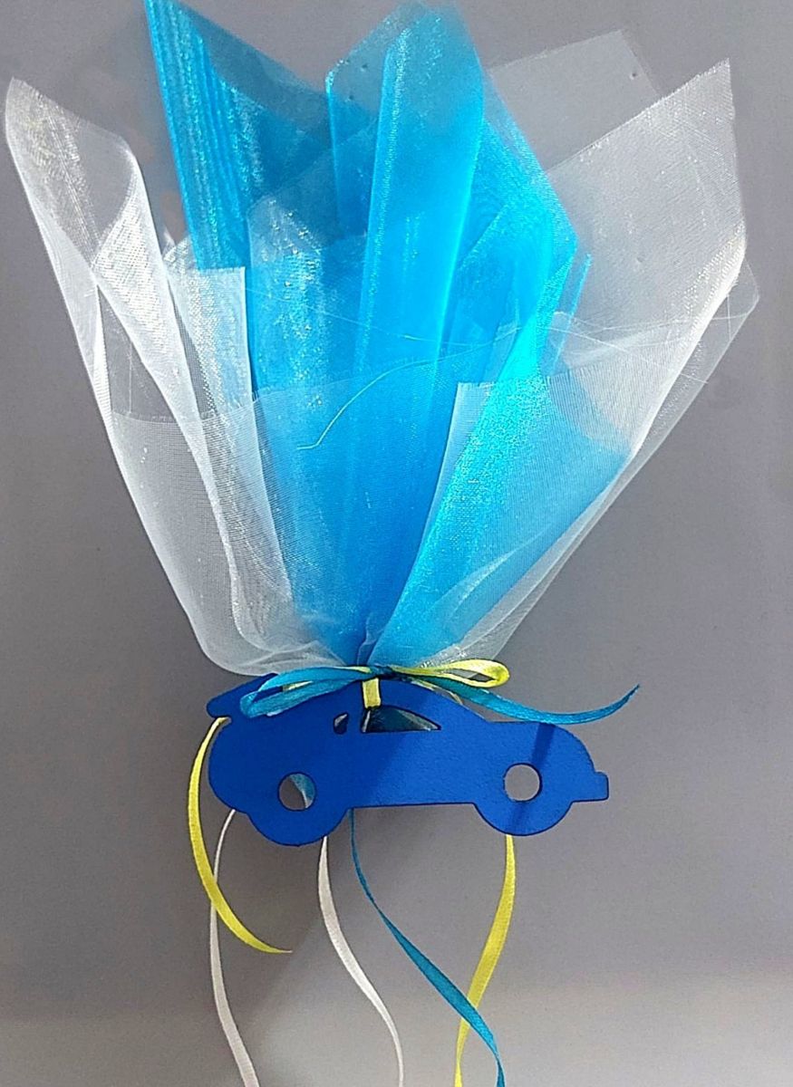 Μπομπονιέρα Βάπτισης με Διακοσμητικό Αυτοκινητάκι Ξύλινο με Μαγνητάκι